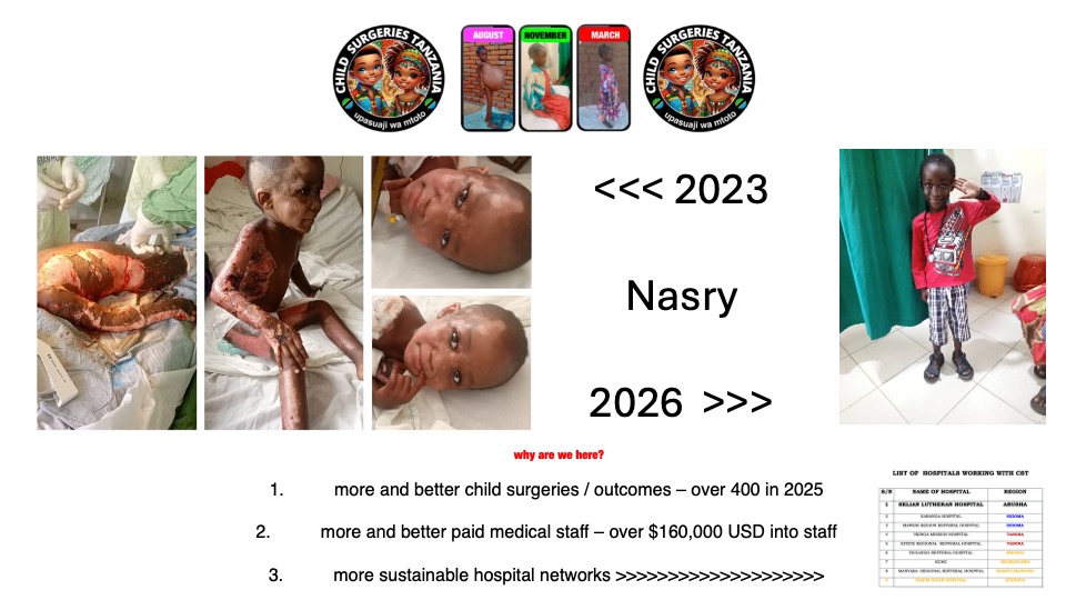 Her surgery, follow-up, and recovery in 2022, cost less than a family weekend here. She’s now a healthy young girl, living near Dodoma, Sub-Sahara.
